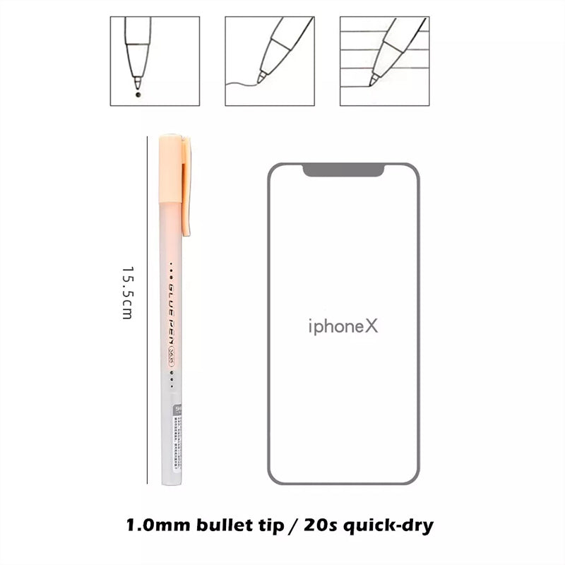 Utformad som en penna – tryck och rulla för att applicera limmet enkelt. Den mjuka kulspetsen ger ett jämnt flöde, precis som att skriva!