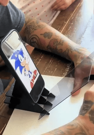Sluta rita av! ✨ Vår smarta tavla projicerar valfri bild på papper med hjälp av din telefon och en kristallklar lins. Rita bara av linjerna – perfekt konst på några minuter! 🎨 Perfekt för barn och nybörjare. Dra av filmen och börja skapa! ✏️➡️🖼️ #EasyArt #DrawingHack